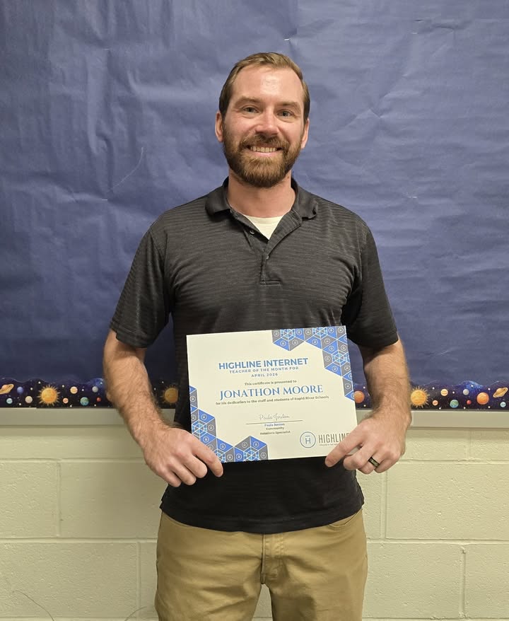 This month, we are honoring Mr. Jonathan Moore, Special Education Teacher who runs the resource room, teaching English and Math to K-12 students, and the middle school track coach at Rapid River Schools. He has been teaching for 11 years. He started his career at Big Bay where he spent two years, moved to three years in Gwinn, one year in Kalkaska, one year at Escanaba, two years in Munising, left teaching for two years and now he’s been at Rapid River for the last two years. He holds a master’s degree in Learning Disabilities and worked with the Autism Centers of Michigan in Traverse City while teaching in Kalkaska. Jonathan enjoys interacting with the kids and building a rapport with the kids building a good relationship with them. He said that if he’s having a bad day the kids have a way of changing his perspective on something and helping him turn his day around. Math may be his strength, but he has learned to enjoy teaching English and Reading as well. The most difficult part of teaching is the anxiety and concerns he feels for his students over time. Since they only have the kids for a few hours during the day it’s hard to know what his students encounter once they leave school for the day. We asked Jonathan who or what may have inspired him to choose a career in teaching. He told us that Mr. O is his mentor at the school who was also his biology teacher, football and track coach when he attended Rapid River as a student, inspired him to choose teaching and coaching as a career. He would like to let anyone that is interested in a teaching career know that it is definitely a career worth pursuing, it’s not the highest paying job in the world, but the most rewarding and if you enjoy what you do the money doesn’t matter. Outside of school you will find him tending to his 9 chickens, 2 dogs, 4 cats, where he is kind of developing a small hobby farm at his home in Rapid River. He plays sports all Summer long and lifts weights all year. He’d like to thank the person who nominated him. He stated as teachers, they don’t usually get this kind of recognition in this regard. People do tell teachers they are doing a good job but to have something this concrete to show actually meant a whole lot to him. The person who nominated him said, “Jonathan Moore is the architect of a safe, inclusive world for students who often find school overwhelming. He masters the delicate balance of high expectations and profound empathy, transforming frustration into "aha" moments. Jonathan’s kindness is a vital tool, providing a lifeline to students through his unwavering belief that a disability never defines potential. He doesn't just teach a curriculum; he fosters independence and builds lasting confidence.” Mr. Moore, THANK YOU for choosing a career in education to shape the future of the next generations. Please tell a teacher “Thank you” and please tell Mr. Moore THANK YOU, for his dedication to his Students at Rapid River School.